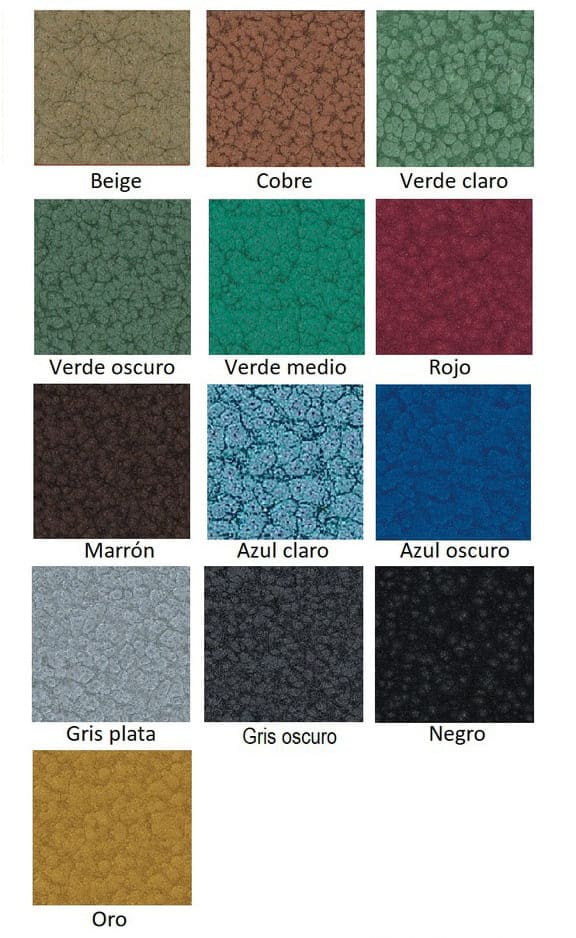 COLOR | Azul claro, Azul oscuro, Cobre, Gris oscuro, Oro, Rojo, Verde claro, Verde seda, Negro, Beige, Gris plata |